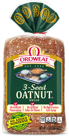 3-Seed Oatnut No Artificial Preservatives, Colors or Flavors No High Fructose Corn Syrup Sunflower seeds, sesame seeds and poppy seeds combine to give this bread a full-flavored, crunchy texture. Share 3-Seed Oatnut Smart Label Buy Now Find in Stores