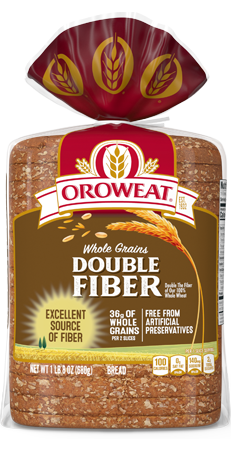 Make a sandwich with two slices of our Double Fiber bread and get 40% of your daily fiber value.