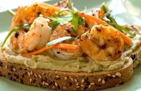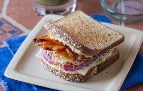 Carrot Bacon Club with Spicy Avocado, Sprouts and Hummus