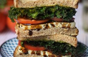Balsamic Herbed Tofu, Tomato, Pesto and Kale Sandwich