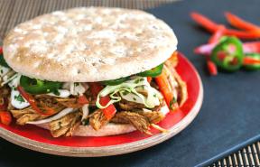 Asian BBQ Pulled Chicken Sandwich with Slaw
