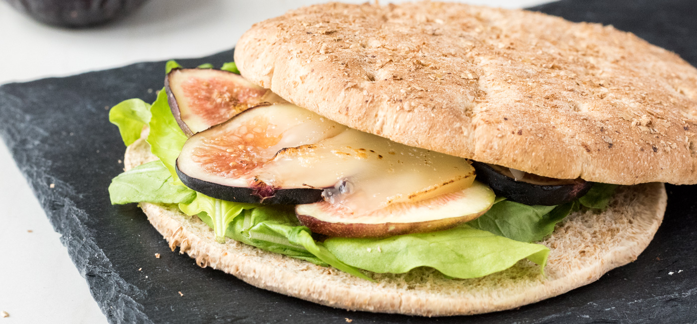 - Place arugula on top of the avocado mash, followed by the fig slices and Gruyére.