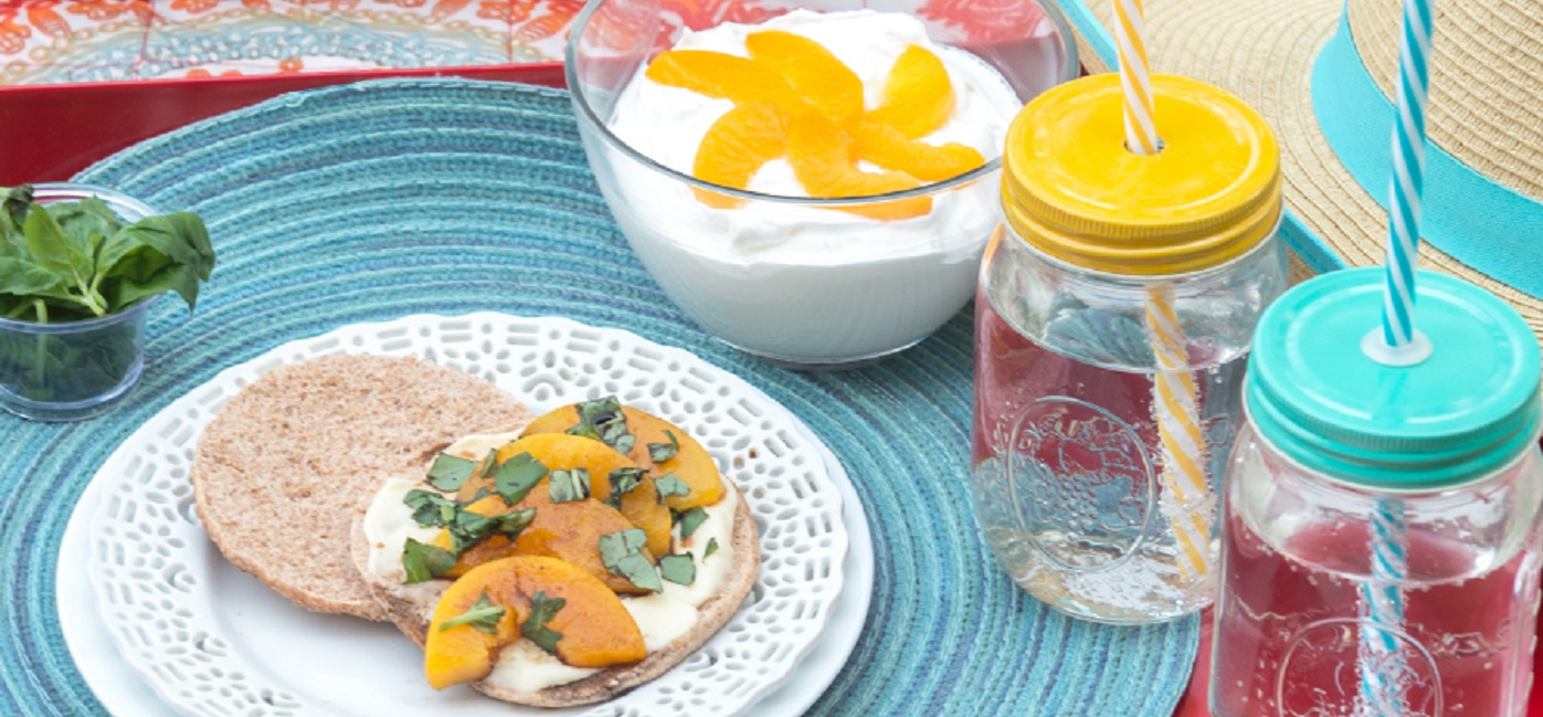 - Assemble each sandwich by layering 2 ounces of brie, 3-5 peach slices, and desired amount of basil.
