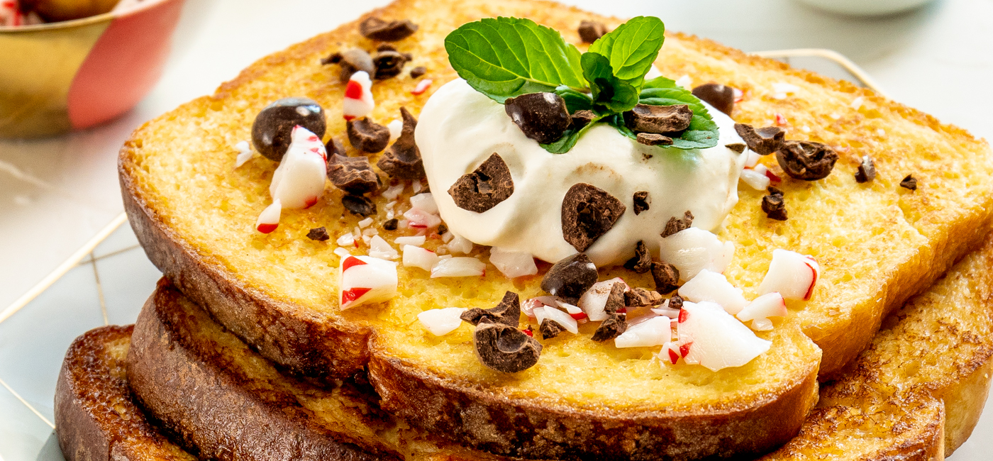 - Sprinkle cooked toast with peppermints and chocolate espresso beans.