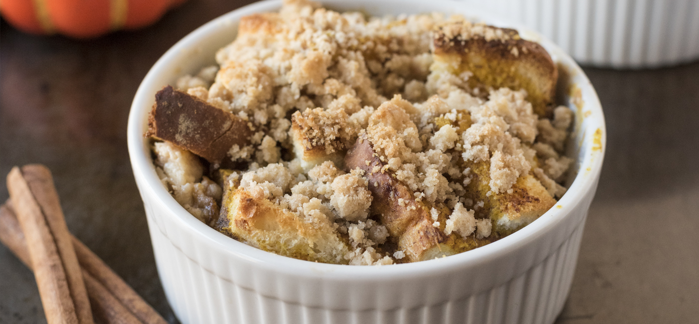 - In a large bowl, mix together milk, pumpkin purée, eggs, pumpkin pie spice, ½ tablespoon cinnamon and vanilla extract.