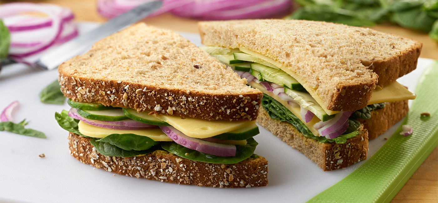 - Sprinkle cucumber with salt-free seasoning, if desired. Put the sandwich halves together and enjoy.