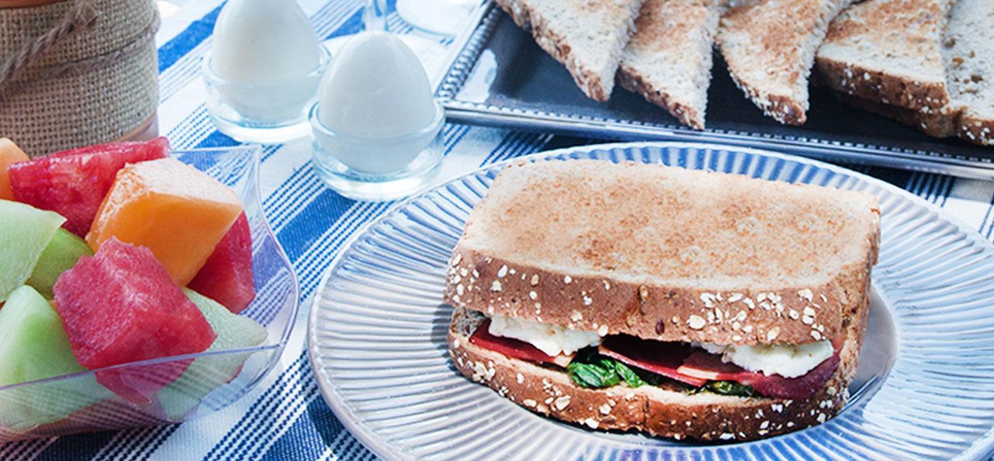 - Layer egg, spinach, and turkey bacon; cover with remaining slice of bread.